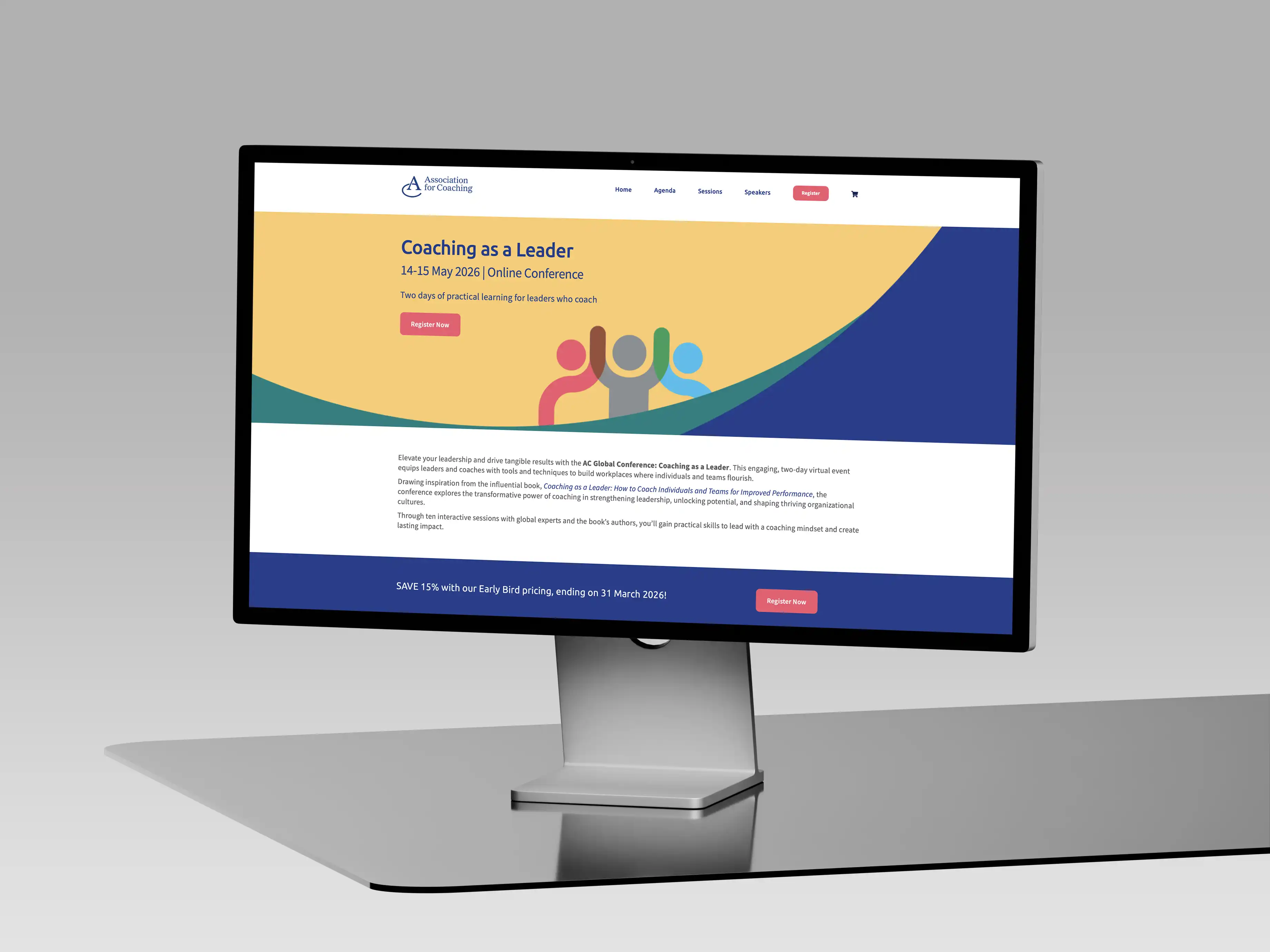 The agenda and speaker sections were designed to highlight value quickly, balancing credibility with accessibility, while ensuring users can navigate between sessions and themes with ease. The platform supports a global audience, with a fully online experience that integrates seamlessly with registration and event delivery tools. The result is a streamlined, high-impact event platform that launched on time and on brief — positioning Leader as Coach as a premium global conference and giving the Association for Coaching a scalable digital foundation for future events.